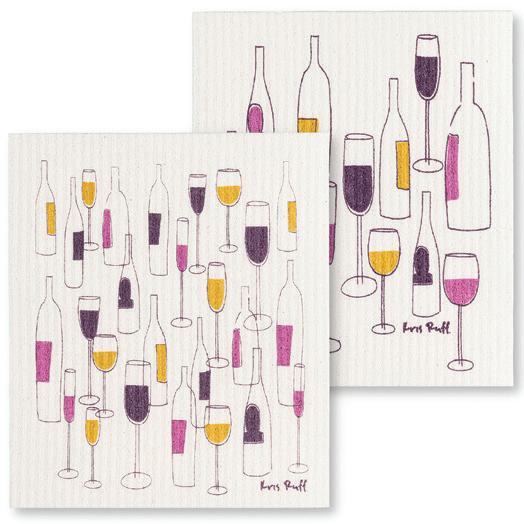 Wine Bottles & Glasses Dishcloths. Ivory/Purple. Cellolose/Cotton.