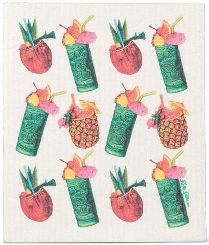 Min 6 6.75x7.5"L 288/C Tiki Drinks Dishcloth. Pink/Green. Cellulose/Cotton.