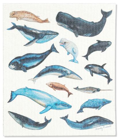 Min 6 6.75x7.5"L 288/C Whales Dishcloth. Ivory/Grey. Cellulose/Cotton.