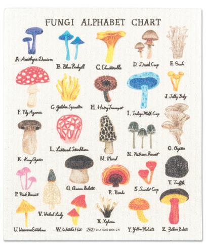 Min 6 6.75x7.5"L 288/C Mushroom Alphabet Dishcloth. Multi. Cellulose/Cotton.
