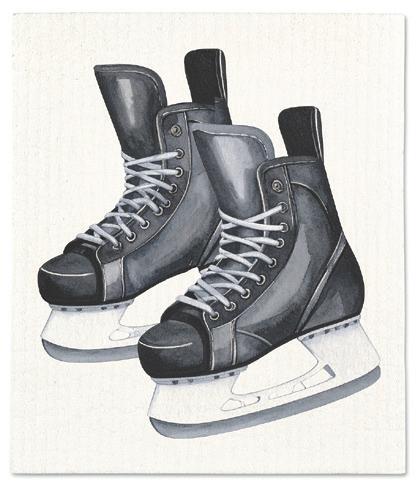 Min 6 6.75x7.5"L 288/C Hockey Skates Dishcloth. Ivory/Black. Cellulose/Cotton.