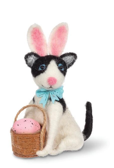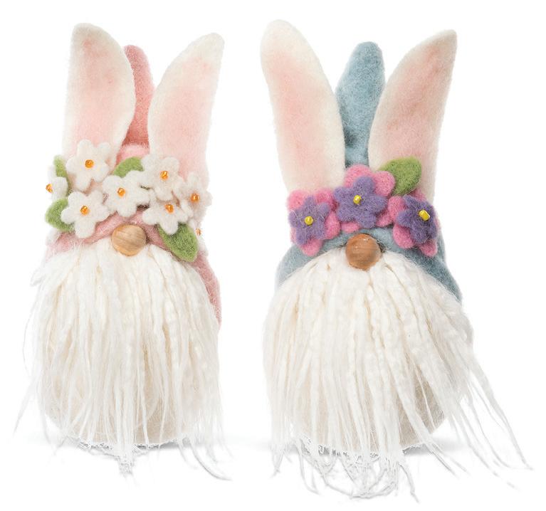 Rabbits in Overalls. 2 Assorted. Yellow/Blue. Wool Felt/Styro.