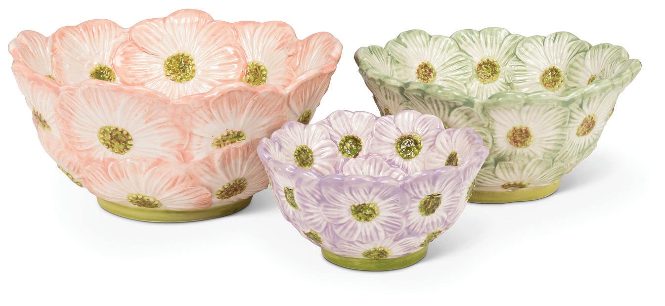 Large Flower Bloom Bowl. Pink. Stoneware.