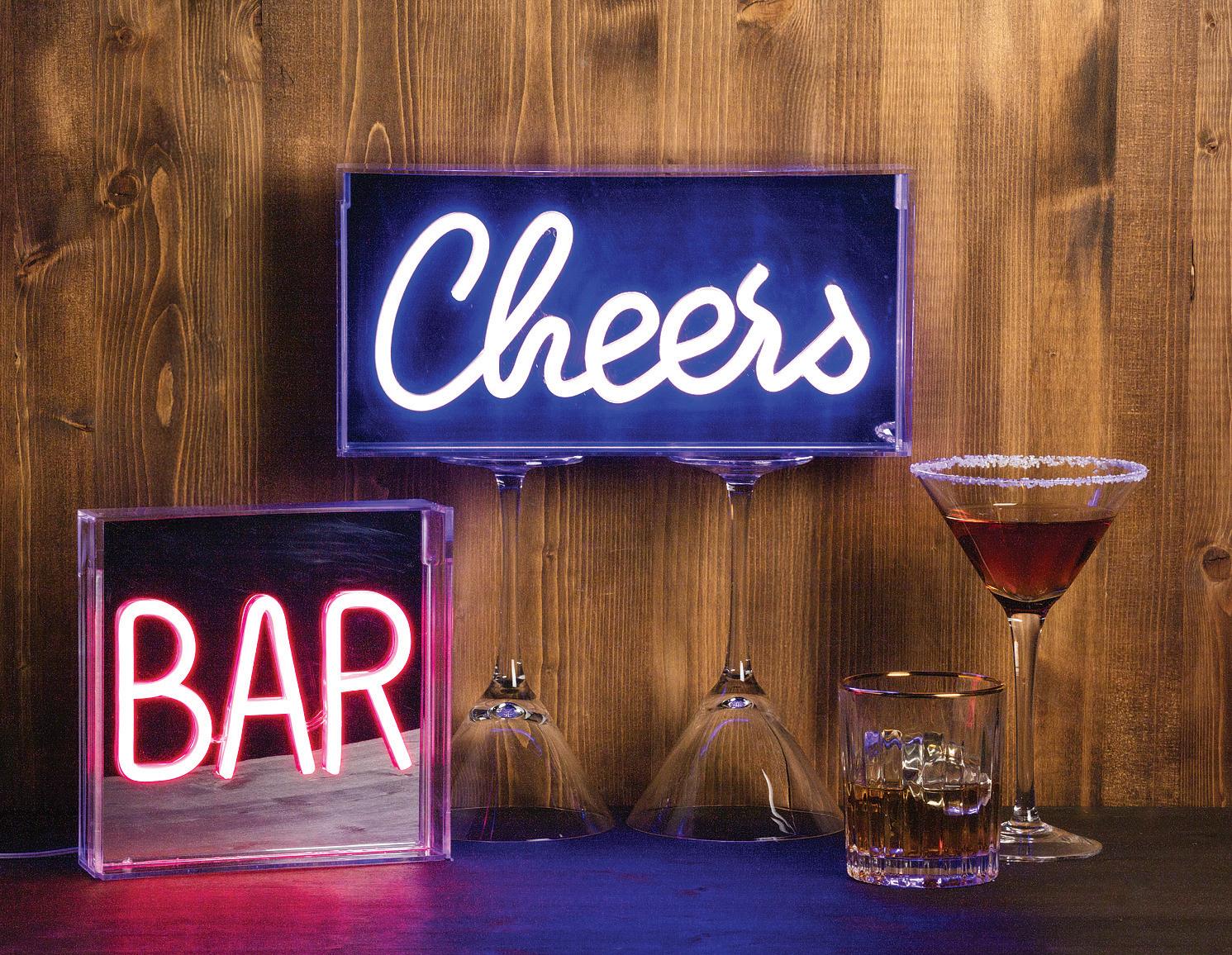 Cheers Neon LED Sign. Blue. Plastic.