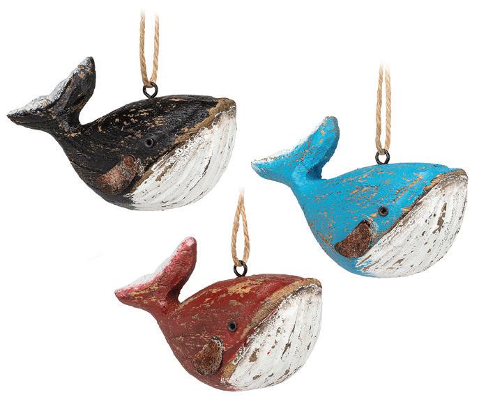 Min 1 10"H (48oz) 6/C Shapely Fish Jug. White/Blue. Ceramic.