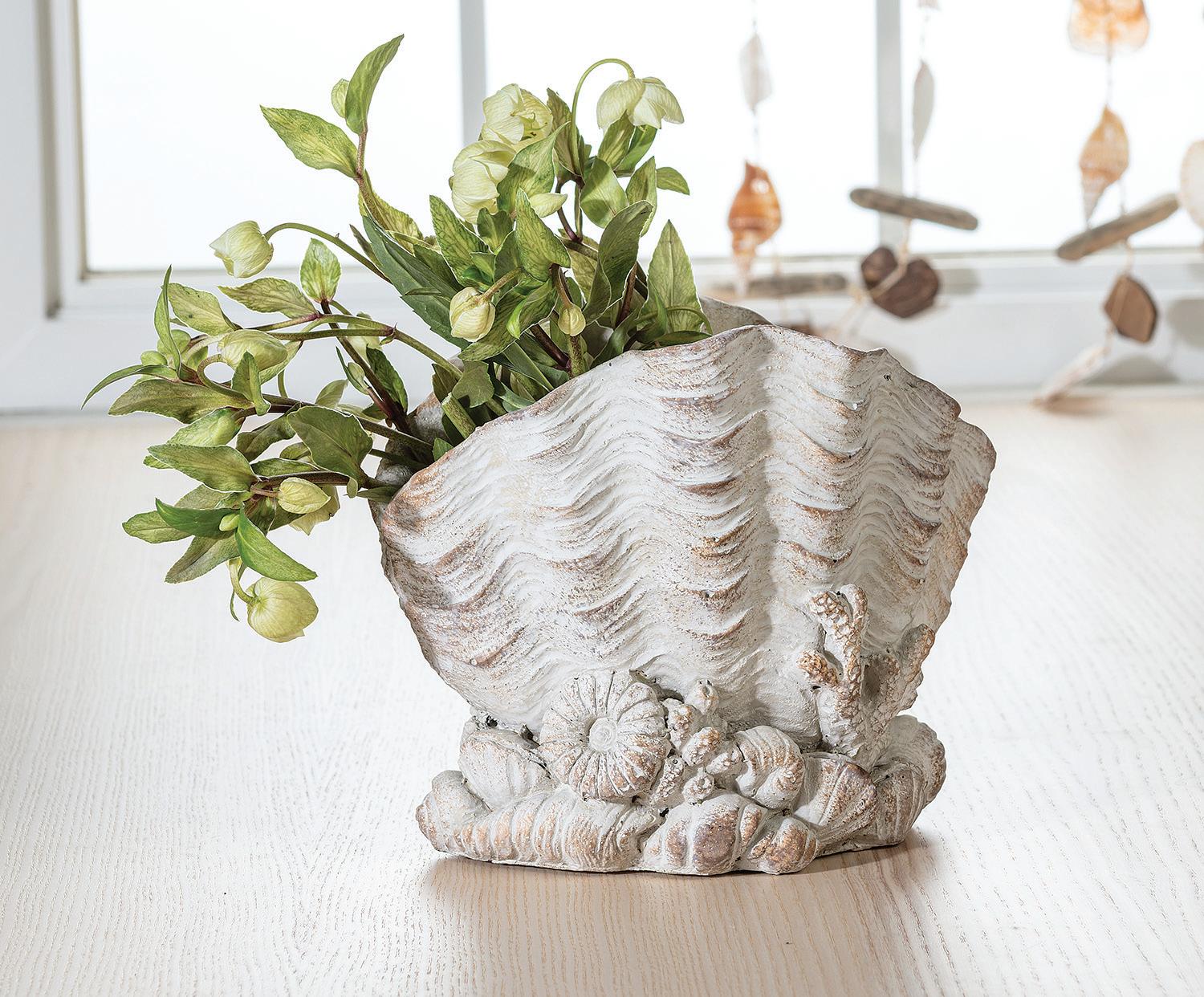 Coral Tealite Holder. White/Clear. Resin/Glass.