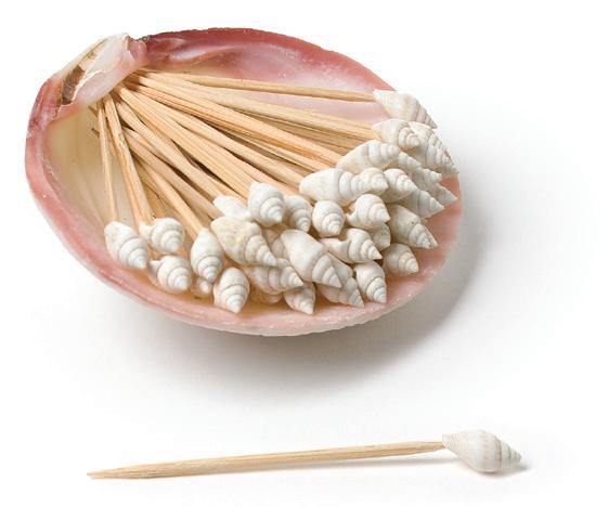 Min 12 3"L 144/C Shell Cocktail Picks. 50 Pieces. White. Natural Shell/Wood.