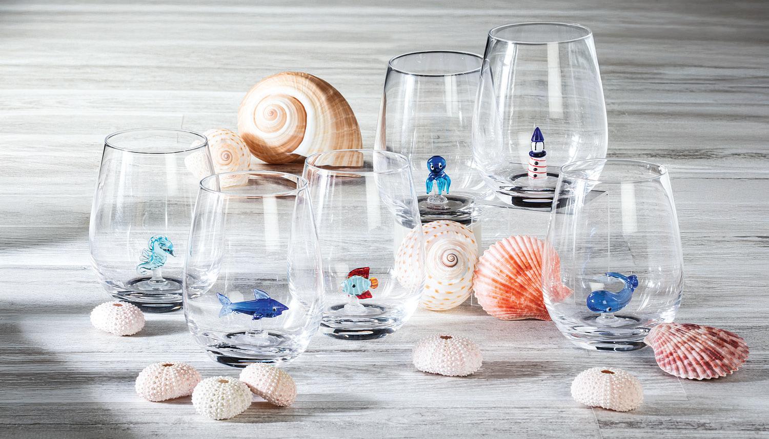 Min 4 6"H (12oz) 32/C Shells & Starfish Wine Glass. Clear. Glass.