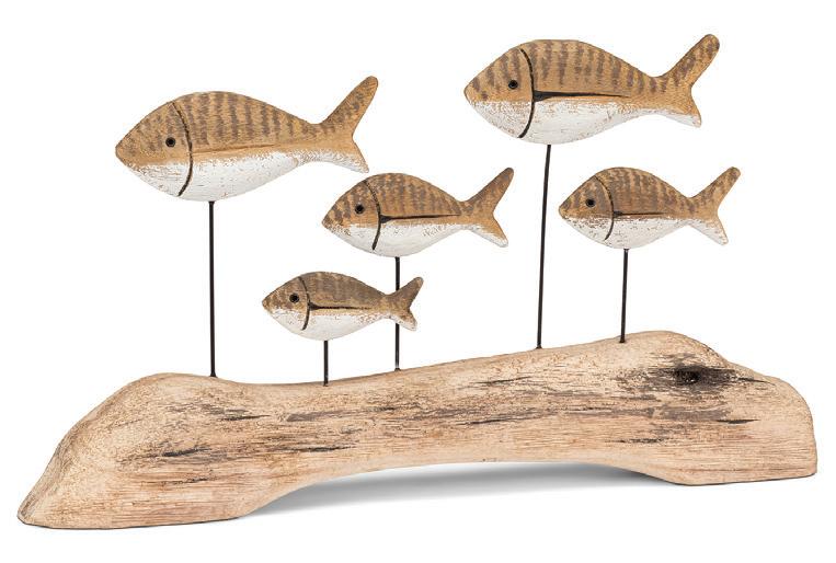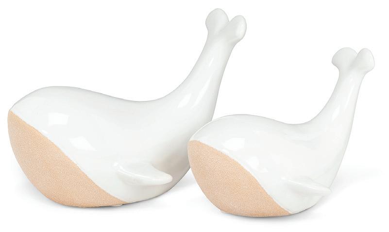 Min 1 10"H (48oz) 6/C Shapely Fish Jug. White/Aqua. Ceramic.