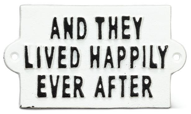 Min 4 5.5”W 48/C And They Lived...Sign. Antique White. Cast Iron. Cast iron pot hangers