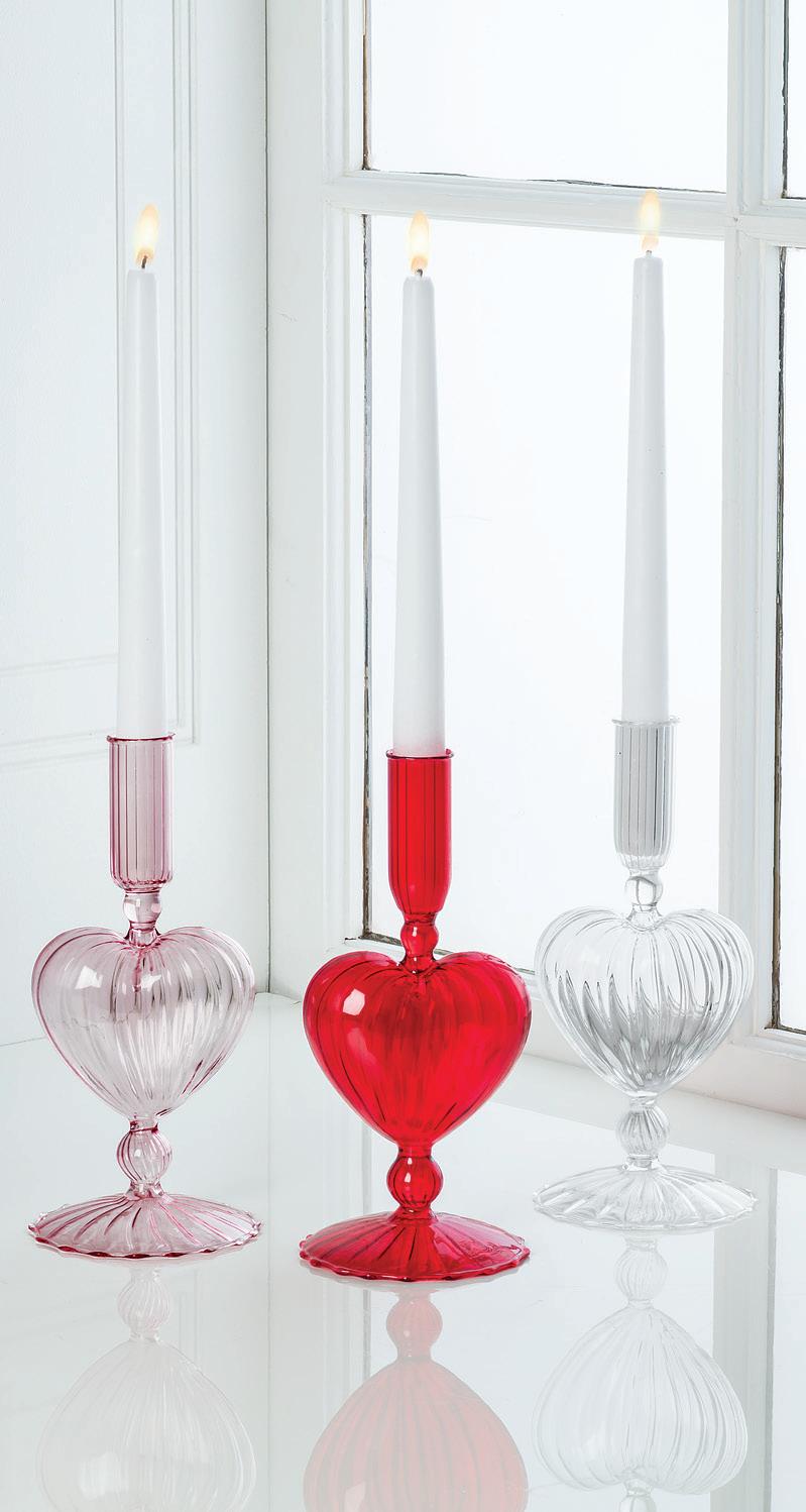 Min 1 8"H 12/C Heart Taper Holder. Red. Glass.
