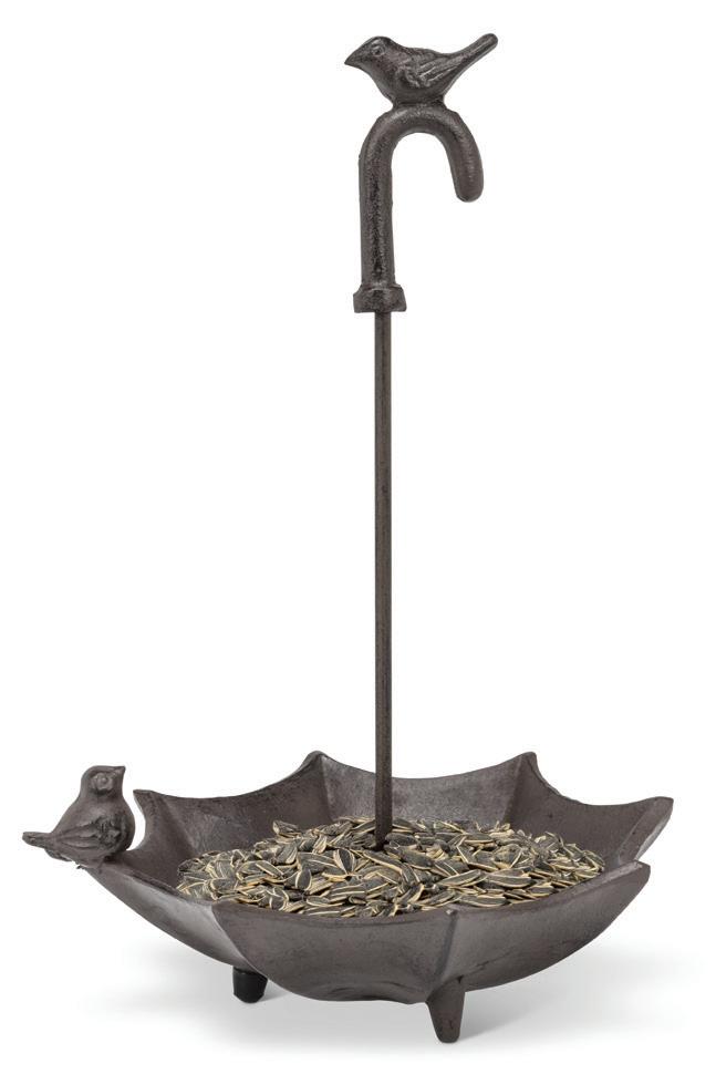 Umbrella Bird Feeder. Brown. Cast Iron.