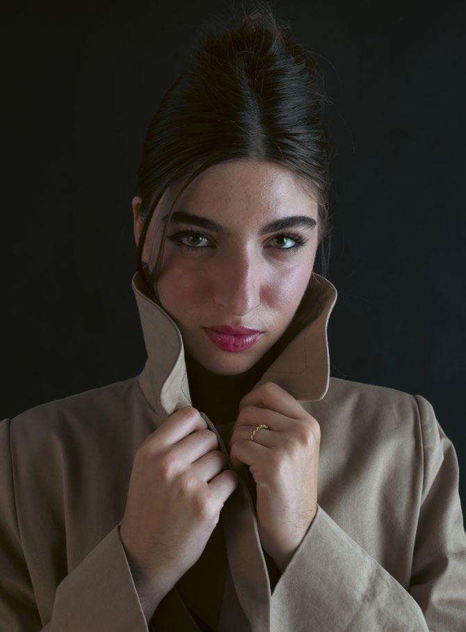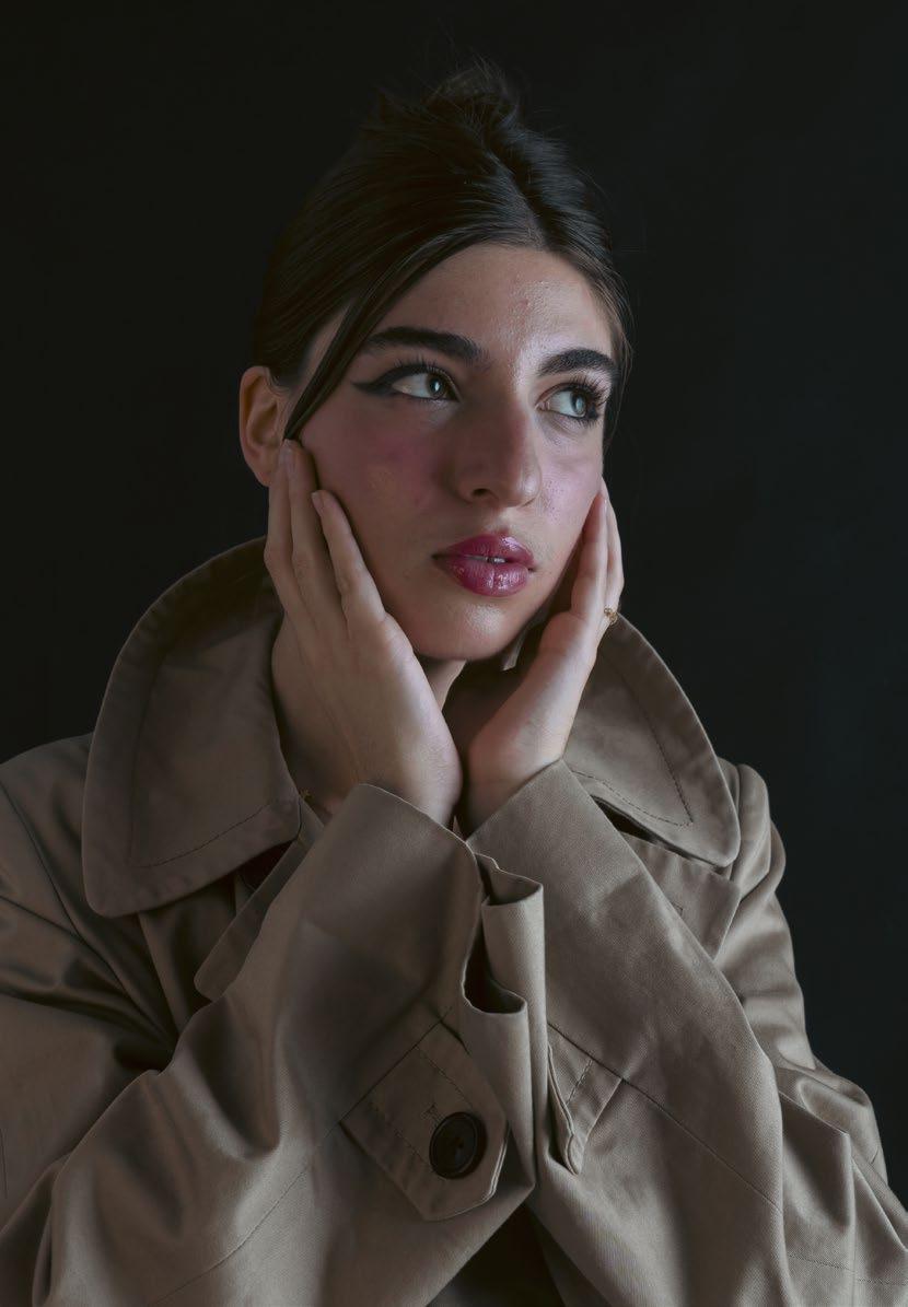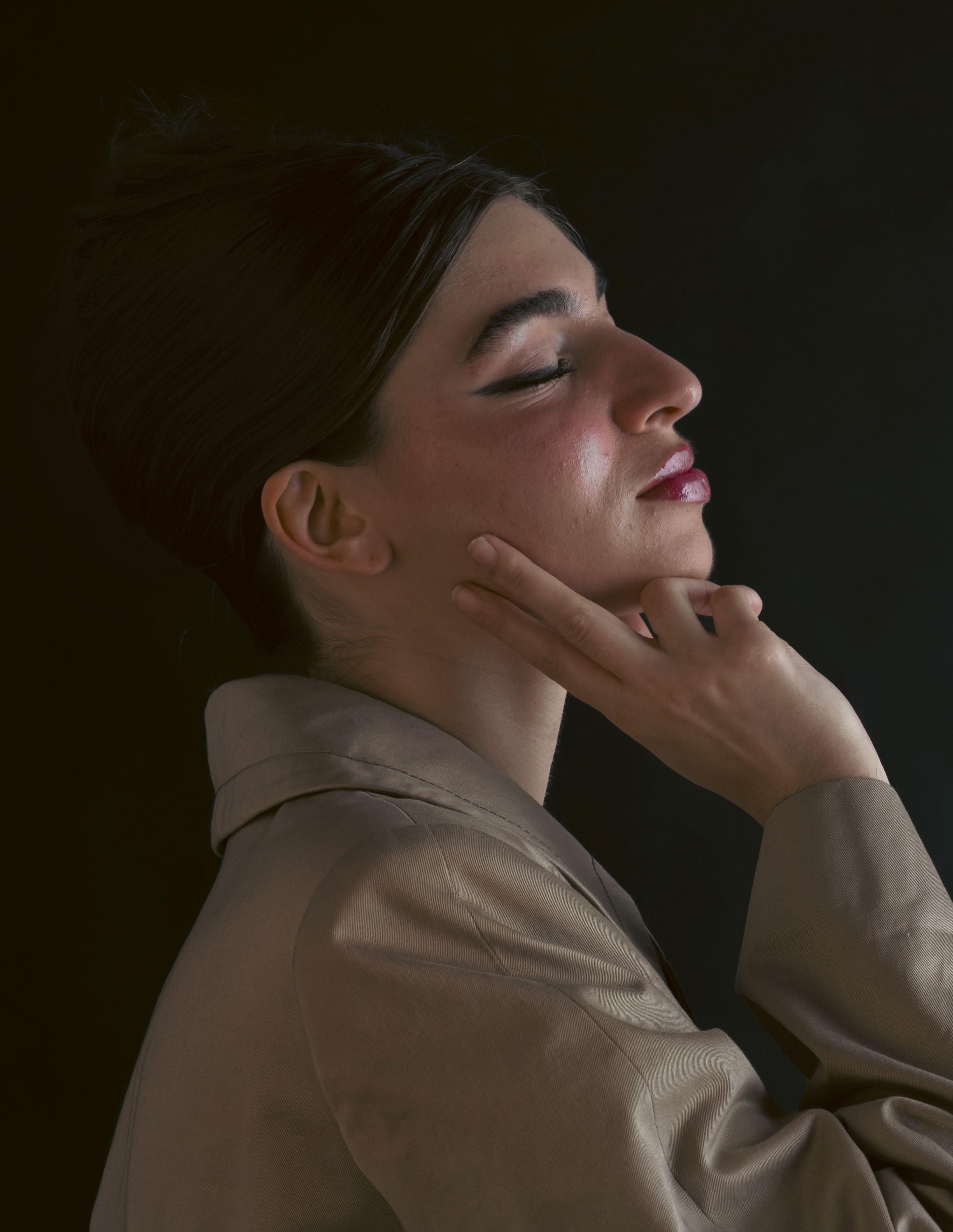 The third look draws from 1960’s Broadway glamor and the emotionally expressive elegance of classic stage icons. Hair and makeup are precise and bold, almost severe, taking on a sense of emotional control. The aesthetic draws from classic stage drama and cinematic glamor, where elegance and mystery feels part of a larger self-made narrative.