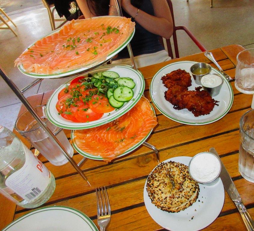 Be sure to try Sadelle’s signature bagel towers with hand-sliced fish and accompanying vegetables.