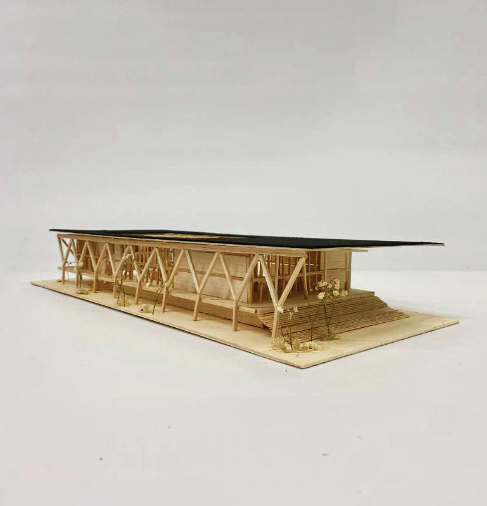 The construction methodology of the housings and the communal area are generally consists of glulam and CLT. Glulam posts provide primary structure, while CLT are used as internal cladding, flooring, and ceiling. Exposed timber is also chosen as a roofscape to blend well with the rough and natural site.