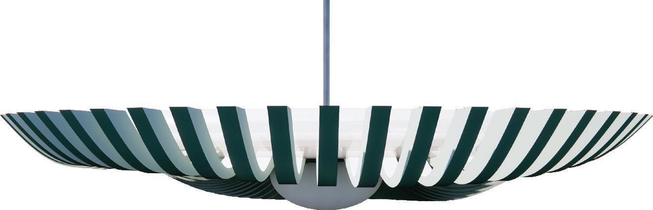 The luminaire operates on a multi-sensory principle, o ering layered illumination. The halo ring provides di used ambient light that mimics morning brightness, stimulating awareness and spatial clarity. The lower dome di user emits a softer, grounded glow that brings warmth and calm to the environment. create a subtle contrast between Mirroring how travelers recharge between destinations.
