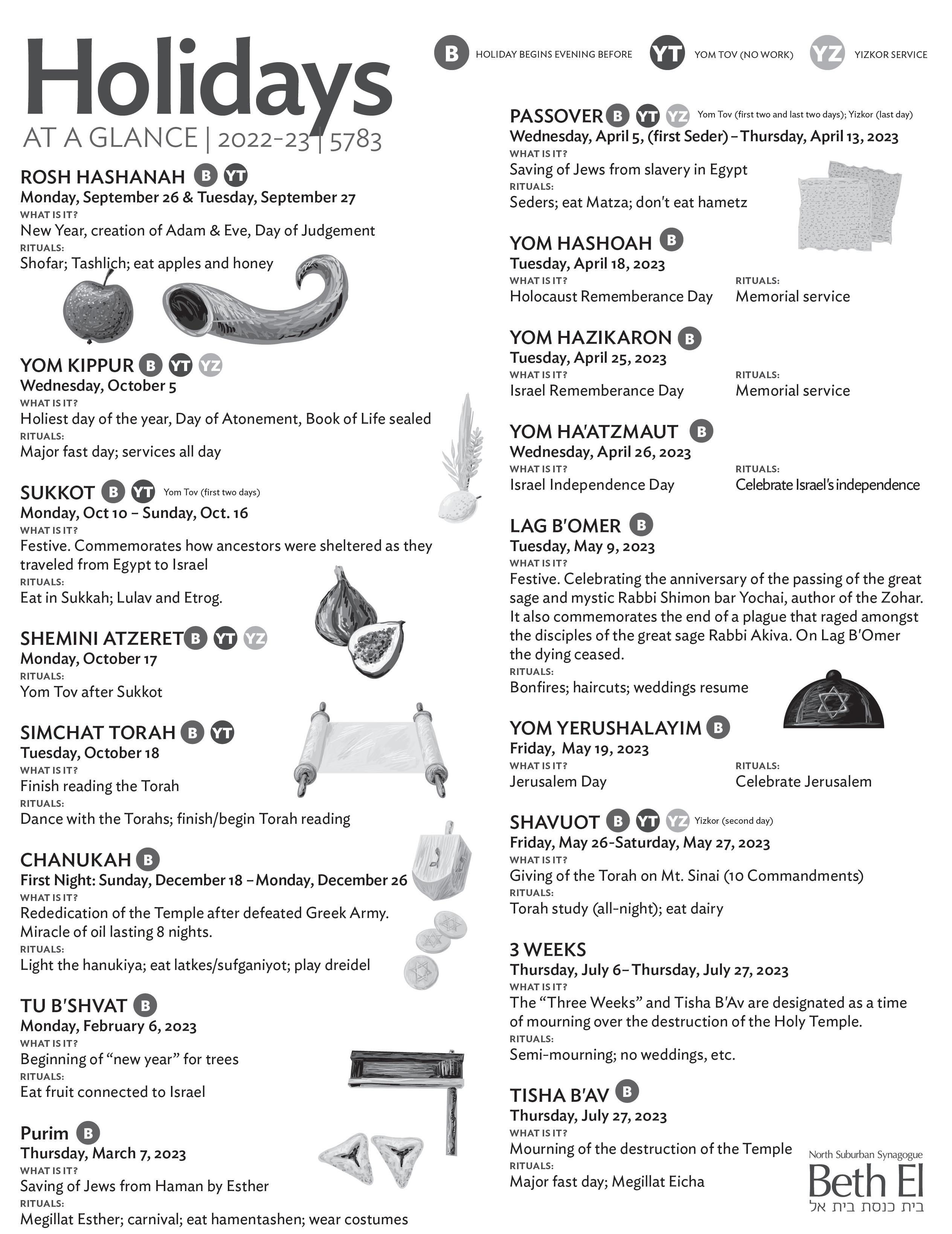 It is hard to write this in mid-July without mentioning the July 4th tragedy in Highland Park. We remember those who lost their lives and pray for those who were injured physically and for those who have been traumatized. Beth El can arrange for counseling in-person or by Zoom. Please contact our clergy or office anytime for more information.