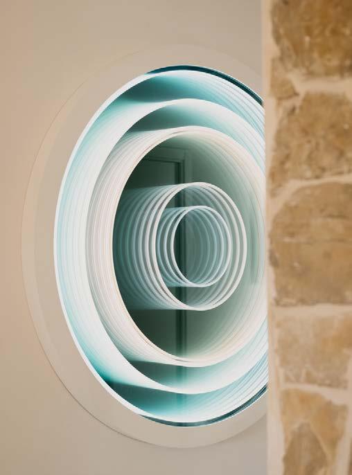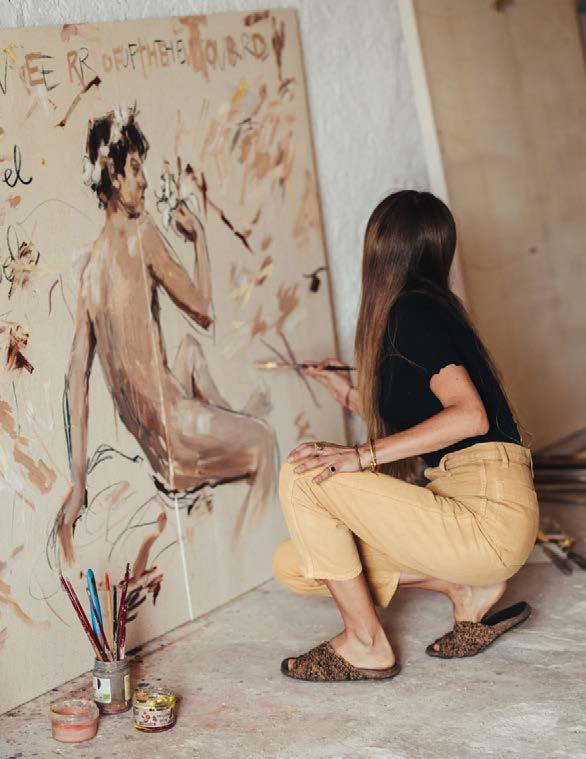 Villa Wesco specialises in furniture for interiors and exteriors as well as top-of-therange outdoor kitchens. Highly customisable and resistant, these German-made kitchens incorporate a range of appliances from induction teppanyaki grills to kamado ovens. Their multi-award-winning designs won the German Innovation Award in 2020. Accompanying the perfect exterior kitchen is everything else you could need for alfresco dining and entertainment. Ana guides us through the garden, bringing our attention to beautiful teak tables and chairs by Manutti, luxurious daybeds by DEDON and distinctive ceramic vases by Des Pots. “It’s in our interest to have high quality furniture,” she says, “because we want our clients to have every confidence in us and our store.” Stepping inside the manor house, we feast our eyes on elegant table settings, sophisticated living rooms and refreshing bedrooms. “We also work alongside artists,” Ana tells us, “Such as Anna Goschin, who was in British Vogue a few months ago.”