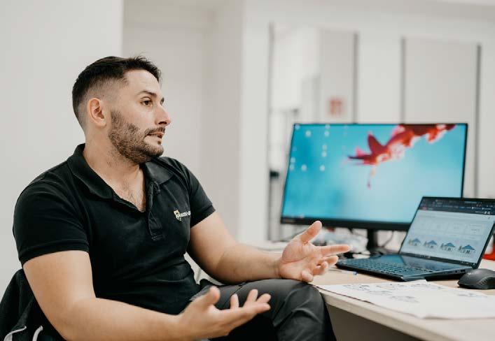 „Wir sind nicht darauf aus, um jeden Preis zu verkaufen”, fährt Pere fort. „Wir führen für jeden Fall eine individuelle Analyse durch, bei der wir den Verbrauch jedes einzelnen Kunden berücksichtigen, und wir bieten eine entsprechende Lösung an.” Obwohl sie keine Marketingleute und Verkäufer sind, hat es sich herumgesprochen, und sie gelten auf Mallorca als führende Experten auf ihrem Gebiet. Sie sind zertifizierte Installateure für die in Deutschland hergestellten Sonnen-Batterien und einige der wenigen zertifizierten Installateure für die TeslaBatterie. Miquel Àngel kann gar nicht oft genug betonen, wie wichtig es ist, ein Unternehmen zu beauftragen, das nicht nur Experten beschäftigt, sondern auch alle Sicherheits- und Gesundheitsprüfungen sowie Versicherungsunterlagen in Griff hat. „Es gibt Risiken, derer sich Hausbesitzer nicht bewusst sind, wenn sie Leute in ihr Haus lassen...”, sagt er. Der Einsatz billiger, ungeschulter Arbeitskräfte ist selten kosteneffizient. In der Vergangenheit wurde das ecoenergia-Team gerufen, um beschädigte Paneele zu reparieren, die durch eine minderwertige Installation entstanden waren. Neben Solarmodulen und Autoladegeräten bieten sie auch ein System-Backup für Häuser an.