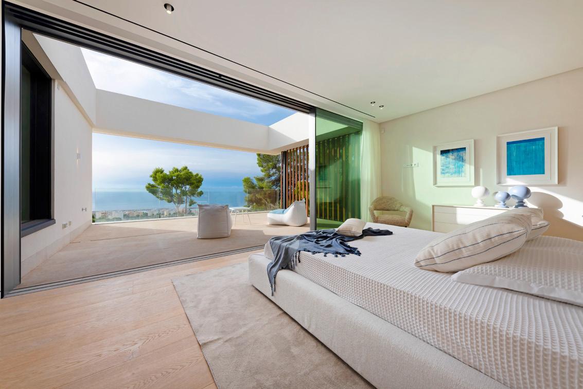 Exclusive, new construction. Modern Detached Luxury Villa for sale with unobstructed Seaviews and private swimming-pool. Direct elevator to all 3 floors, located in Costa de Blanes, Calvia, Mallorca. This wonderful modern villa has 3 large double bedrooms, 3 full bathrooms on the upper floor. A large living room with a restroom and direct access to the kitchen and the pool with solarium and terrace area with garden on the middle floor. The kitchen with a central island, natural stone and wood materials with seaviews, is a true delight. A basement with a garage and direct access to all floors with an elevator. The house makes a total of 652m2 built on a 1,005m2 plot and a 553m2 private garden.