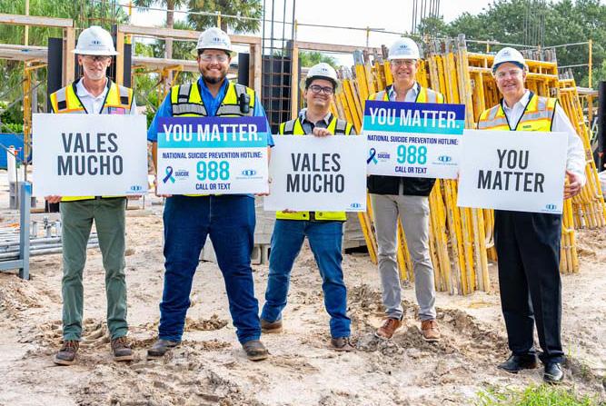 DeAngelis Diamond posted 250+ signs in English and Spanish with messages of encouragement like “You Matter / Tú Importas” and “It’s Okay to Ask for Help / Está Bien Pedir Ayuda.” Team members’ hard hats also featured stickers with the Suicide & Crisis Lifeline number, ensuring workers have resources at their fingertips. The firm also hosted a learning session on mental health and suicide prevention to provide team members with tools and strategies for supporting team members.