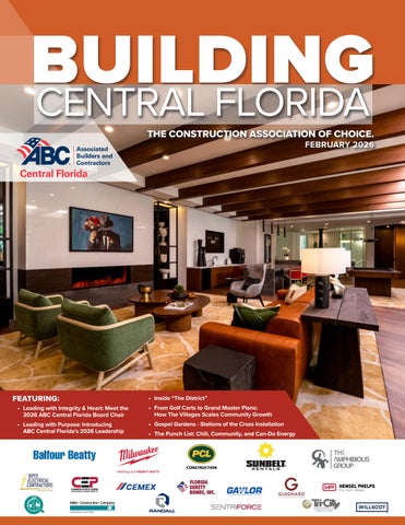 At ABC Central Florida, 2026 is a year of intentional leadership that is creating a lasting legacy. We are investing in workforce development at every level—from expanding apprenticeship pathways and strengthening craft training, to embracing technology that improves safety, productivity, and project outcomes. The stories in this issue highlight exactly why that investment matters. Our members are delivering excellence on complex projects, navigating a changing regulatory environment, and stepping up as leaders in their companies and communities.