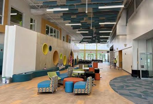 Interior spaces came to life thanks to firms like KHS&S Contractors, who installed millwork fixtures and themed shelving, including massive Bowserthemed bookshelves with integrated audiovisual effects that required multiple rounds of structural redesign. Percopo Coatings Company worked closely with Universal Creative to match paint colors exactly to their video game counterparts, making the land feel authentically “game-like.” Interior Specialties provided partitions, fire protection, AEDs, and bathroom accessories that matched the bright, bold aesthetic of the Super Mario universe, while also emphasizing immersive continuity in Donkey Kong Country with more natural, rustic tones.
