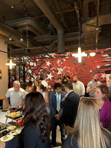 The event featured comfortable indoor seating, live music, and ongoing sports & entertainment, creating a vibrant & relaxed atmosphere for professionals to connect.