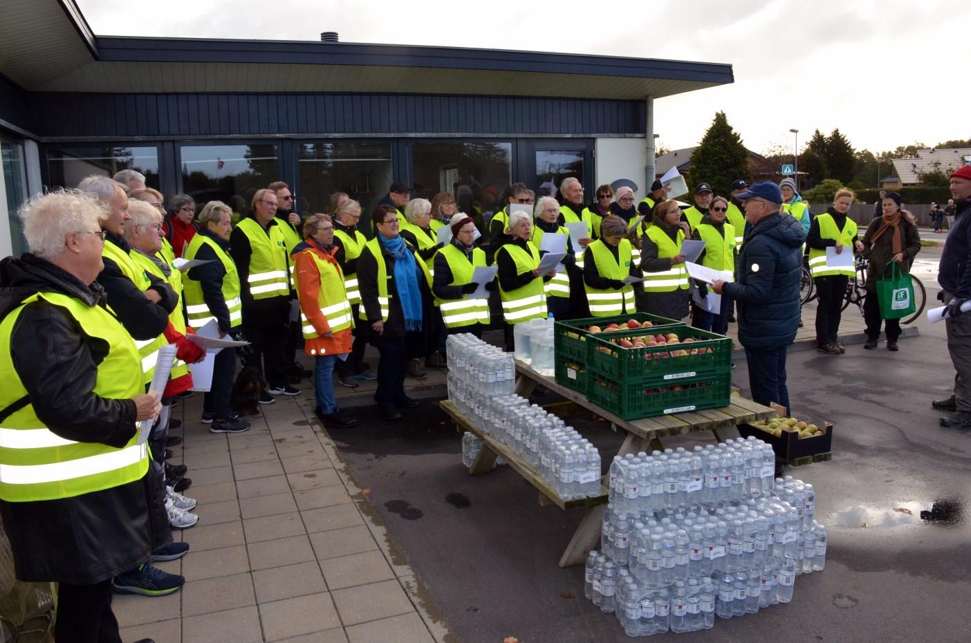 Der er jo opsat fine vejviserpæle, men de gule veste hele vejen rundt gjorde det ekstra festligt, og børnene fik da indtryk af, at alle aldre bakkede op om deres anstrengelser.