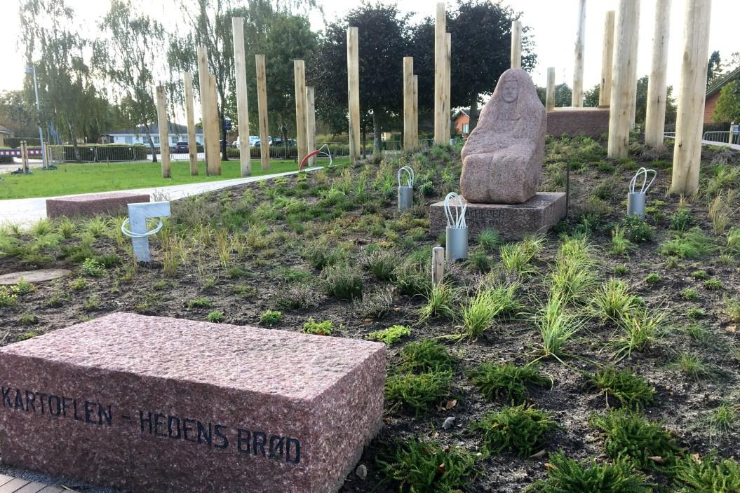 Byparken (ved Kartoffelpigen) og Torvet (ved Brugsen) er nu ved at være færdige. Den store bænk omkring bedet med Kartoffelpigen er sat