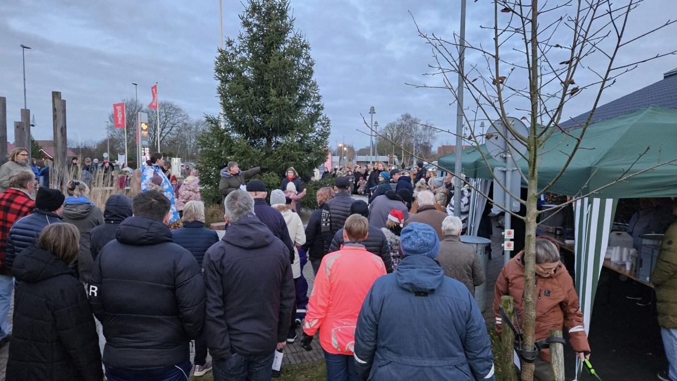 Som nogen måske husker, væltede juletræet sidste år i en storm få dage efter arrangementet, men takket være en ny og bedre sokkel har det stået fint i år.
