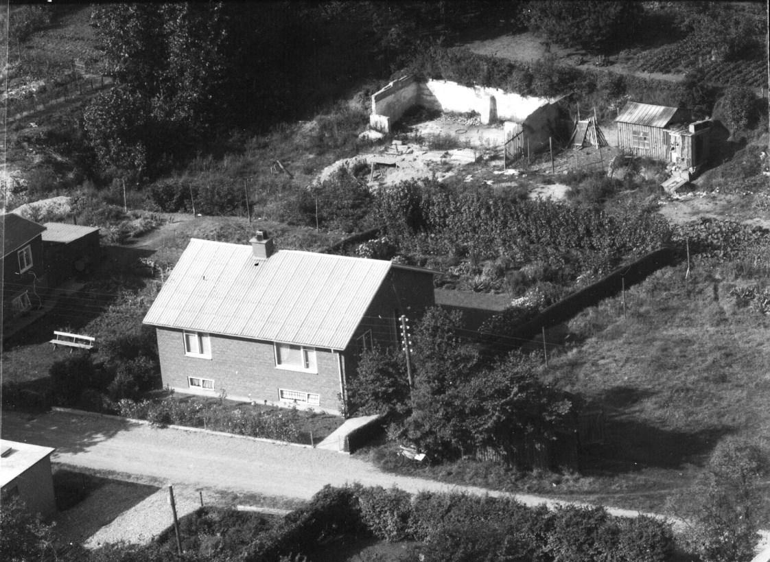 KnudErikJohansenkunneogsahuske frasinbarndom,atderetstykkefra husetpasydsidenstadiglakraftige betonfundamenterfraenvindmølle, somengangstodder.Ogrigtignok-pa etbilledefra1910sermantydeligt vindmøllenoverhustageneienposition,derpassermedsandgraven.
