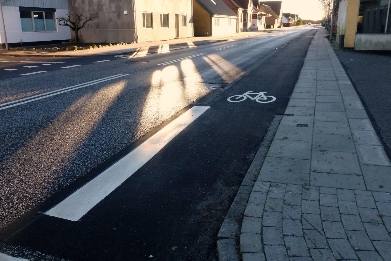 ..at i slutningen af november blev man endelig færdig med opretningen af fortov og cykelsti på en stor del af Søndergade ...og i starten af december blev stregerne malet op ...alt sammen dejligt og tiltrængt