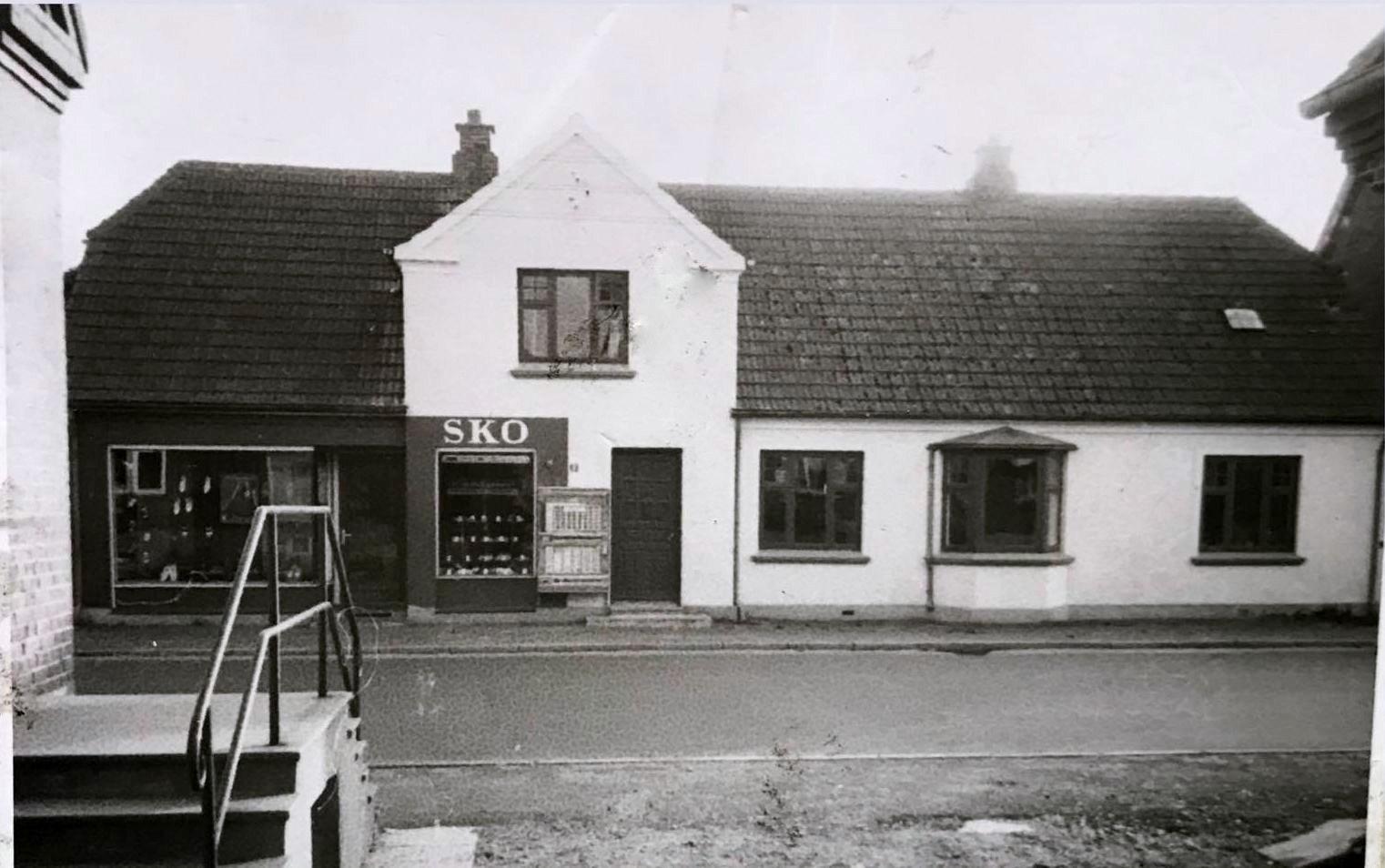 Før 1970. Nørregade 17, hvor der er foretaget en tilbygning, og Kirstines butik er blevet udvidet med ny indgang og stort butiksvindue mod vejen.