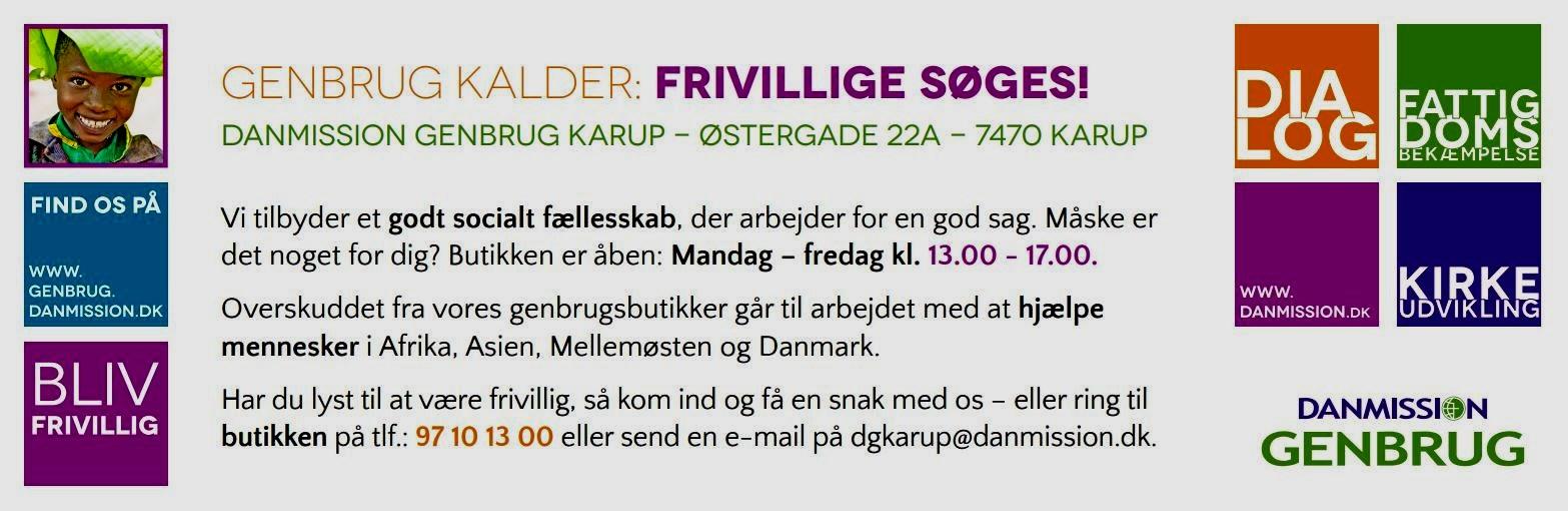 Henvend dig til de frivillige i butikken og giv dem dit navn og dit tlf.nr. eller ring til butiksleder Karin Lieder på tlf. 97456025.