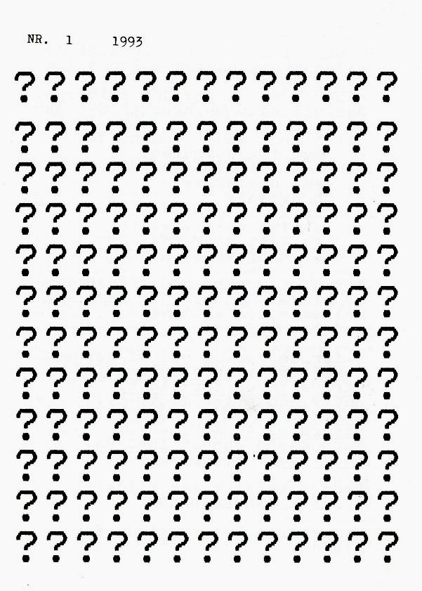 Bladets stiftere var åbenbart fra starten i bekneb for et passende navn, for hele forsiden af det første nummer i januar 1993 bestod af 12 rækker store spørgsmålstegn! Alle læsere indbydes til at lave indslag til bladet, og man udsætter en præmie på 1 fl. Gl. Dansk for det bedste forslag til navn og logo til bladet!