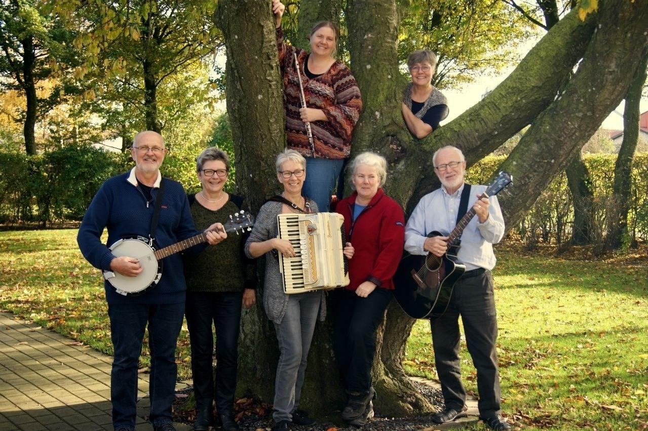 En gruppe mødes i Seniorhuset i Karup hver mandag formiddag. Alle nyder det sociale samvær medens maskinerne snurrer og strikkepindene klirrer. Stof og garn modtages gerne.