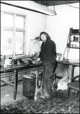 LISAN18februar1979kortførbygningerneskulleværerømmetden1.3.1979. IdehalvtommeproduktionslokalerarbejderejerenAndersSchmidtshustruAnna medatbejdseryglæntilstole.På1ste salenendelstoleklartilafleveringog salg.Detvaropaddenhvidesøjleden omtaltekakkelovnstod.NederstarbejdersønnenBrianmedatlimestolesæder. KarupEgnsarkiv(F119-5,F119-6ogF119 -8)Foto:ArendtNielsen