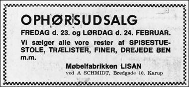 1959-1969: Møbelfabrikken LISAN I/S ved Anders Schmidt og Aage Juhl Knudsen,