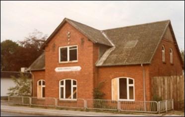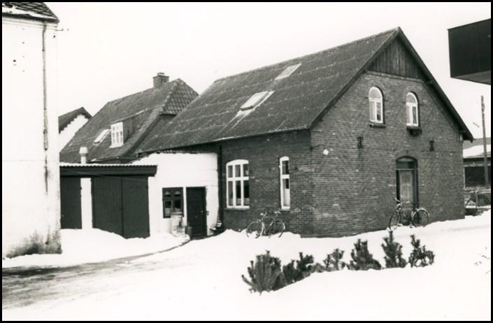 Bagsidenafforhusetudmod Bredgade.HerboedeindledningsvisfamilienSchmidti stueetagen,mensfamilien Knudsenboedepå1st.sal. Bagvedlåfabriksbygningen vinkelretpåBredgade.Billederneertagetifebruar1979 kortførbygningerneskulle værerømmetpr.1.3.1979. Fabriksbygningenblevkorttid efterblevrevetnedtilfordel forkommunensønskerom flereP-pladsericentrumaf byen.(KarupEgnsarkiv,F1191&2),Foto:ArendtNielsen.