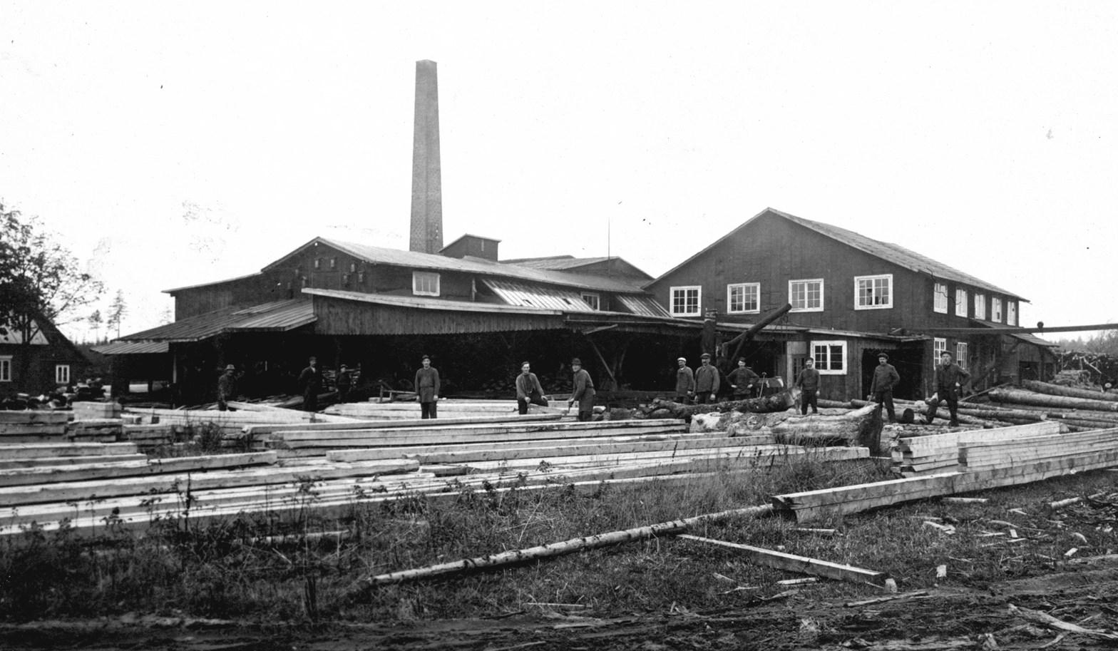 Det hele startede småt og enkelt for den unge iværksætter, både for savværket og privatboligen, men med de store mæng-