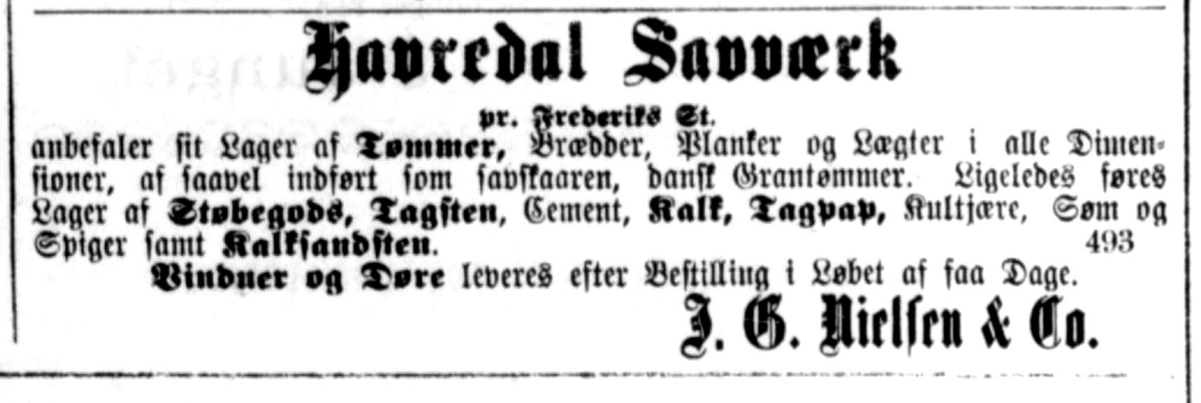 HerningFolkeblad7.april1909.NavneterendnuuændretefterflytningentilFrederiks,men dennyeplaceringerangivetved”pr.FrederiksSt.” Iandreannoncersesdet,atfremtil marts1910underskrivesmed”HaurdalSavværk,FrederiksStation”.