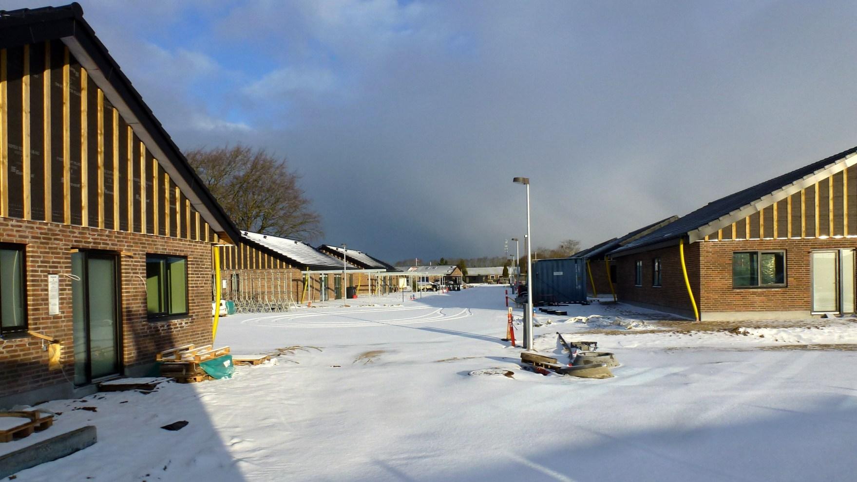 I februar 2025 påbegyndtes byggemodning med kloakering, vejanlæg m.m., og den 31. marts gik HS Byg i gang med opførelsen af deres andel af projektet. Meget passende, og i overensstemmelse med en spørgerunde, som Alhedens Borgerforening iværksatte i foreningens facebook-gruppe, har den nye vej inde