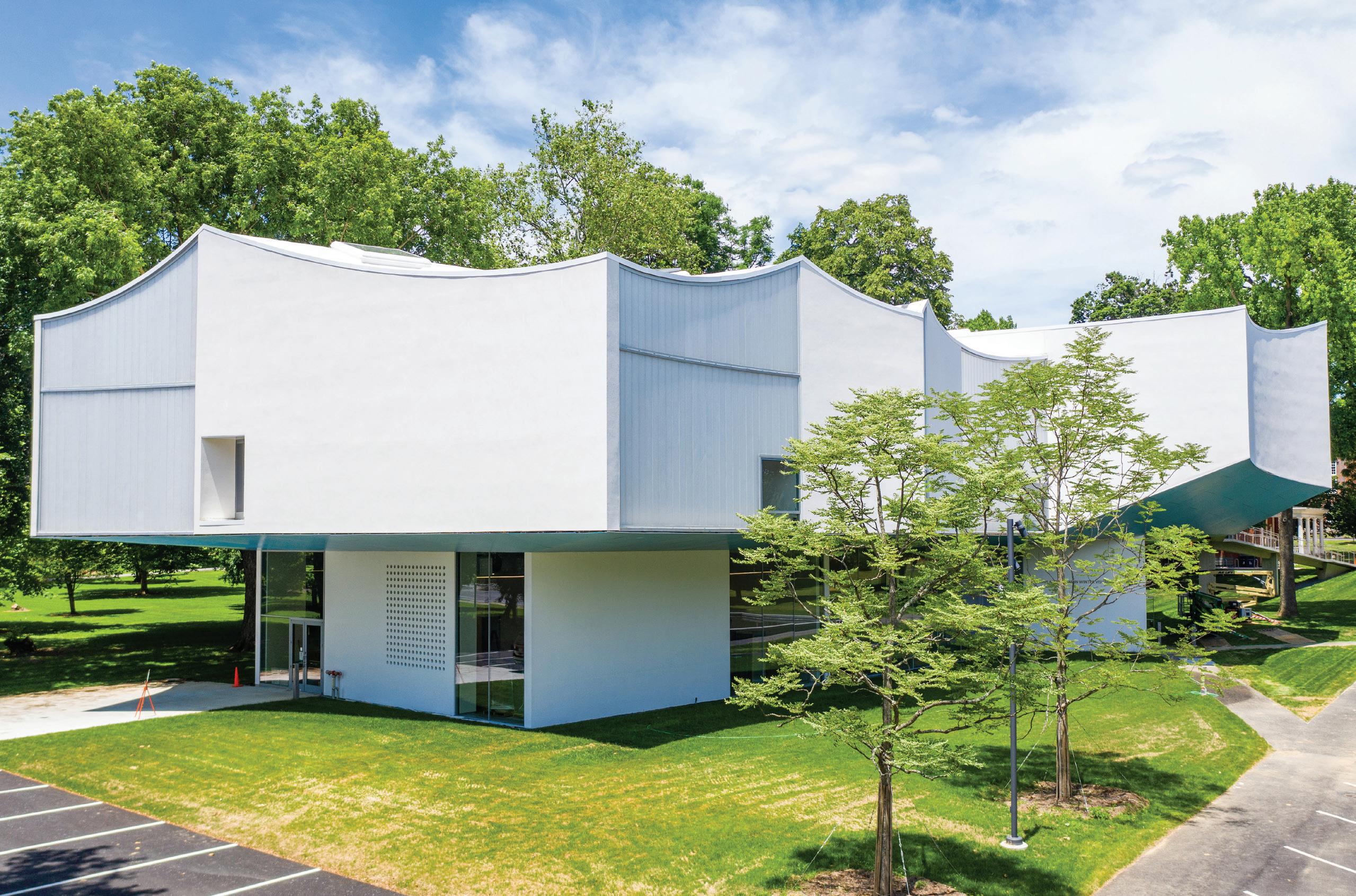 The unique design, which included a suspended structure with cantilevered trusses, channel and structural glass systems, and a recycled glass aggregate envelope on an arboretum setting yielded many challenges but resulted in a one-of-a-kind arts building on an historic campus.