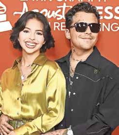 Las imágenes muestran a Nodal con camiseta y gorra color negra, así como a Ángela con un pantalón de mezclilla azul y suéter blanco.