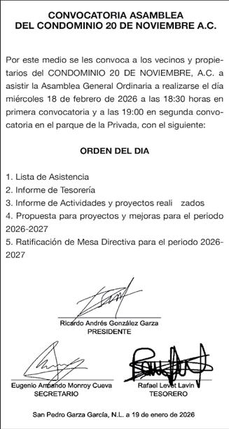 ABC DE MONTERREY Medio impreso de circulación de lunes a viernes / Editor responsable: Gonzalo Estrada Torres. Reserva de derechos: 04-2011020413033200-101 / Licitud de Título y Contenido: 15281. Dirección de la Publicación: Platón Sánchez No. 411, Colonia Centro, C.P. 64000, Monterrey, Nuevo León. Nombre y Domicilio de la Imprenta: Editorial Monterrey S.A., Platón Sánchez No. 411, Colonia Centro, C.P. 64000, Monterrey, Nuevo León. Nombre y Domicilio del Distribuidor: Editorial Monterrey S.A., Platón Sánchez No. 411, Colonia Centro, C.P. 64000, Monterrey, Nuevo León. Ventas de Publicidad y Maquilas: 81-8047- 4900 Ext. 2225 ventasabc@grupoabcmedia.com