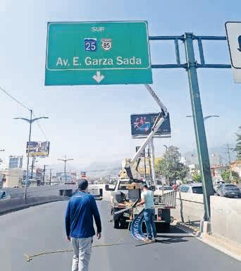 Trabajadores de la Secretaría de Servicios Municipales de Monterrey retiraron el anuncio vial que se encontraba en peligro de caer, el cual se ubicaba en la avenida Eugenio Garza Sada, a la altura de la calle Paricutín, en la colonia Nuevo Repueblo.