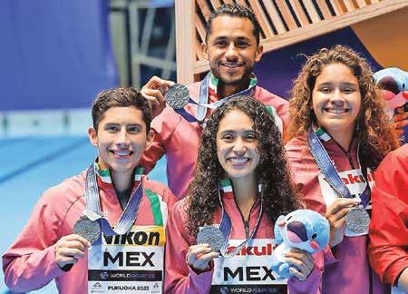 El equipo de mexicano, conformado por los clavadistas Gabriela Agúndez, Jair Ocampo, Randal Willars y Aranza Vázquez, terminó segundo en la prueba de saltos mixtos por equipos en el Campeonato Mundial de Natación que se celebra en Fukuoka, Japón.