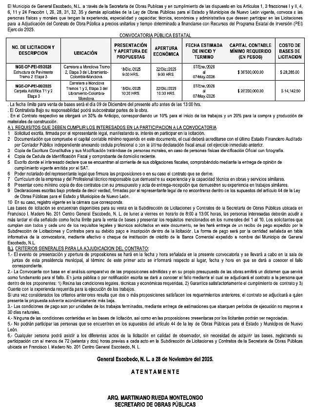 Salazar Gerente de Diseño Enrique Trujillo Álvarez Director de Infraestructura Año 40. No. 12,816 28 de Noviembre de 2025