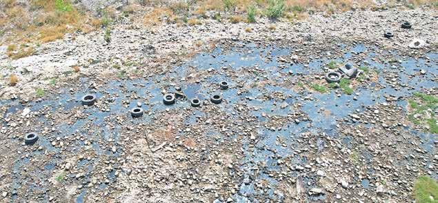 En distintos puntos del cauce se observan neumáticos y otros objetos que lo ensucian.